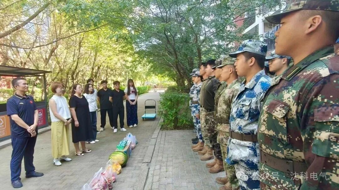 连日来,校园军训场上持续高温,烈日炙烤着训练场的每一个角落。新生们在教官的带领下,有条不紊地开展队列训练、内务整理等军训科目,从基础的稍息、立正动作,到整齐划一的齐步、正步练习,每一个环节都在教官的指导下稳步推进。近日,电气学院开展军训教官慰问活动,向坚守一线的军训教官致以诚挚问候,感谢他们为新生军训工作的辛勤付出。党总支书记林之娜,团委书记杨阳老师,新生辅导员李龙翔老师、高慧萍老师参加。