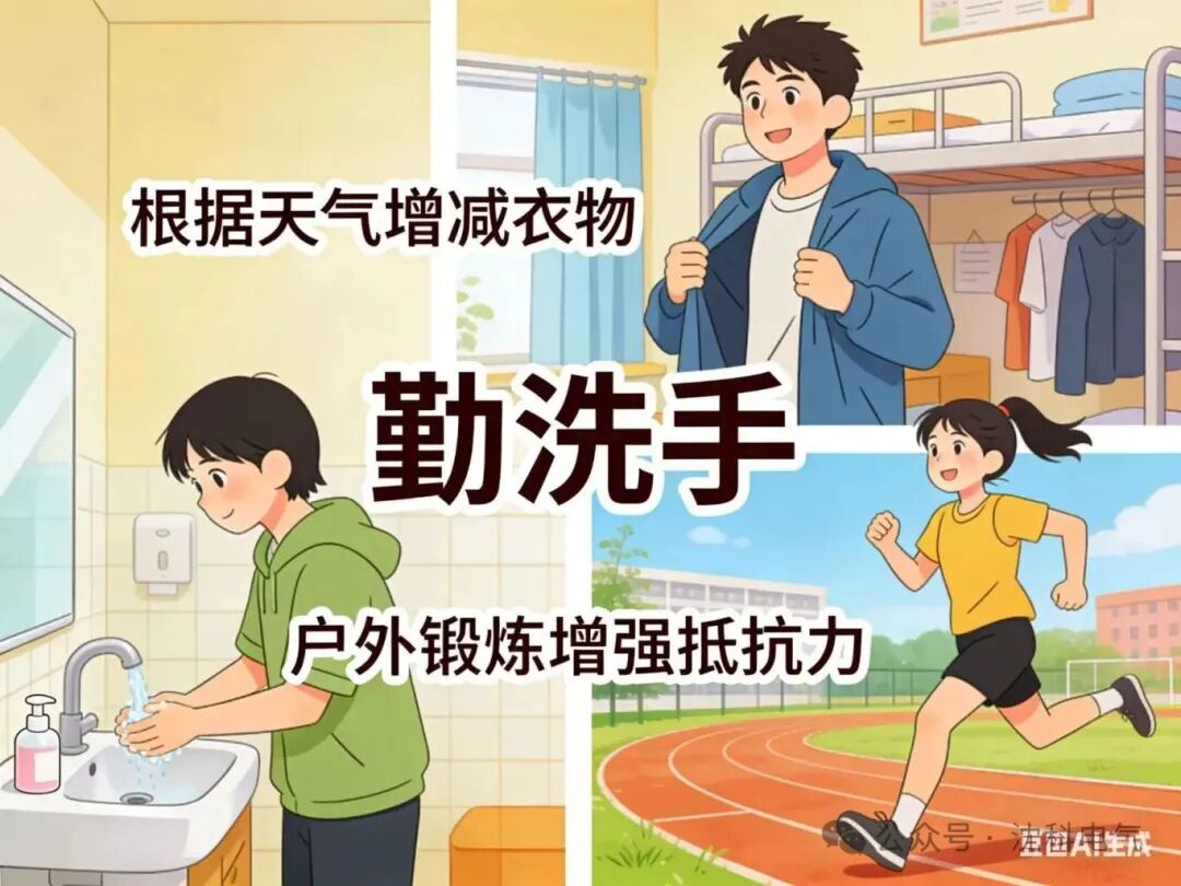 春季昼夜温差大,是感冒、流感、呼吸道不适的高发期。师生们需根据气温变化及时增减衣物,避免受凉;在教室、实验室、宿舍等人员密集场所注意个人卫生,勤洗手、不随地吐痰;适度加强锻炼,增强自身抵抗力;如出现身体不适,及时休息并就医,不硬撑、不拖延,守护自身与他人健康。