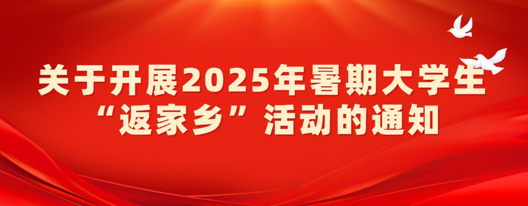 为深入学习宣传贯彻习近平总书记关于青年工作的重要思想,将习近平总书记五四青年节对全国广大青年寄语精神、《论党的青年工作》、《习近平与大学生朋友们》(第一、二卷)作为实践育人的重要指引和生动教材,进一步动员引领青年学生在投身基层建设、服务家乡发展中坚定信念、增长本领、作出贡献。现将2025年暑假大学生“返家乡”社会实践活动通知如下: 活动主题:青春为中国式现代化挺膺担当 ...