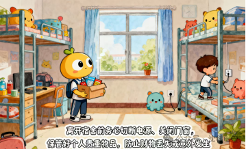 2.离开宿舍前务必切断电源、关闭门窗,保管好个人贵重物品,防止财物丢失或意外发生;